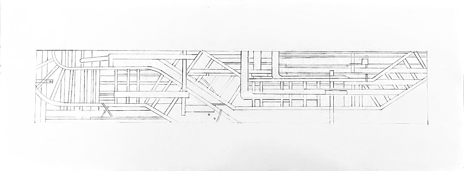 The next phase involved constructing a grayscale collage that abstracted and reimagined elements of the ceiling tiles into a cohesive composition. Building on this, I crafted an all-white 3D model that extended beyond the page, rising up to two inches to emphasize depth and layering. This model exemplifies fine detailing and showcases a sophisticated sense of hierarchy, achieving a minimalist yet striking aesthetic. The process not only honed my technical skills but also underscored the beauty of thoughtful design and spatial interplay.